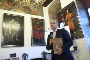 Gdańsk. Ratusz Głównego Miasta. Wystawa "Król Jedzie!" oraz promocja katalogu wystawy. Nz. Radny Marek Bumblis