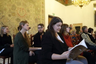 Gdańsk. Ratusz Głównego Miasta. Wystawa "Król Jedzie!" oraz promocja katalogu wystawy. Nz. dr Ewa Szymańska - zastępca dyrektora ds. merytorycznych Muzeum Gdańska