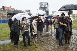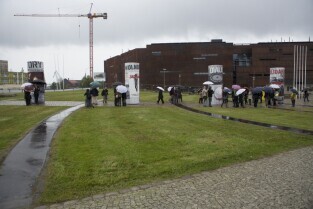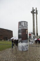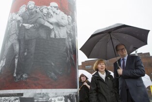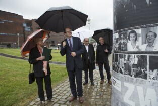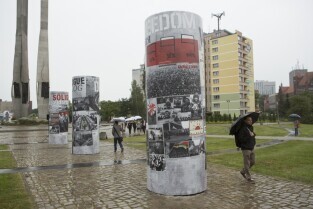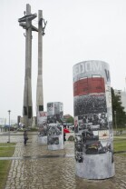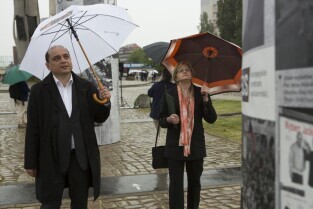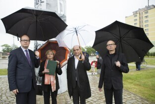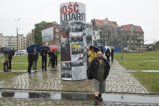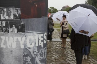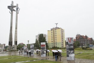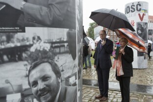 Wernisaż wystawy plenerowej "Czasy przełomu" w 25. rocznicę pierwszych, częściowo wolnych wyborów. Gdańsk, plac Solidarności