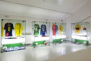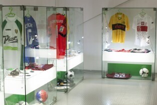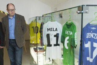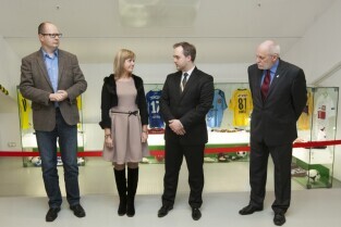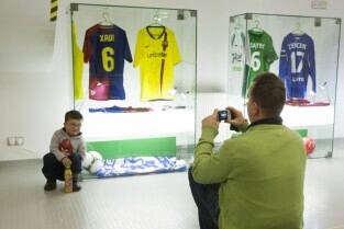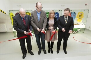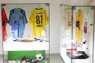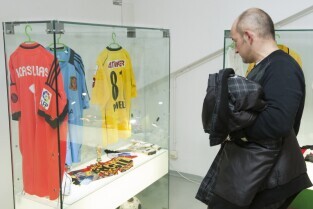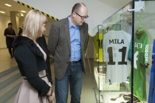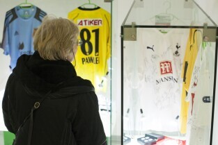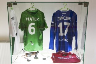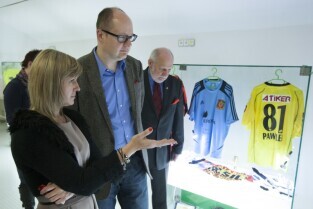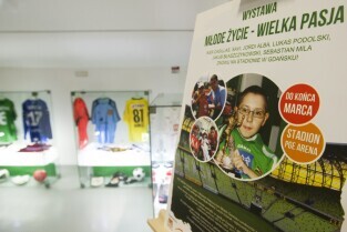 PGE Arena Gdańsk. Otwarcie wystawy "Młode życie - wielka pasja" prezentującej kolekcję pamiątek piłkarskich śp. Dawida Zapiska, niepełnosprawnego chłopca, zagorzałego kibica Lechii Gdańsk i Realu Madryt