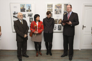 Wystawa sekcji konserwatorów dzieł sztuki w Galerii ZPAP w Gdańsku. Nz. od lewej: Wacław Rasnowski, Izabela Huk-Malinowska, Marzena Kłossowska, Paweł Adamowicz