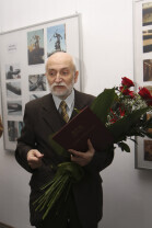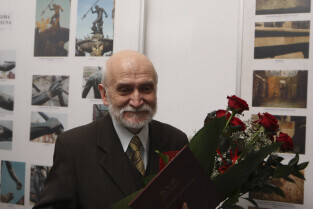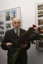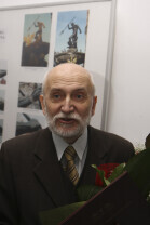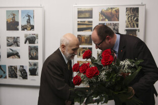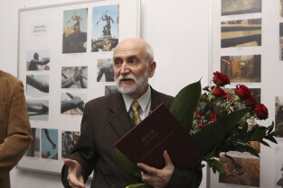 Wystawa sekcji konserwatorów dzieł sztuki w Galerii ZPAP w Gdańsku. Nz. Paweł Adamowicz i Wacław Rasnowski, który otrzymuje od Prezydenta Gdańska nagrodę w dziedzinie kultury, m.in. za wieloletnią opiekę nad Fontanną Neptuna