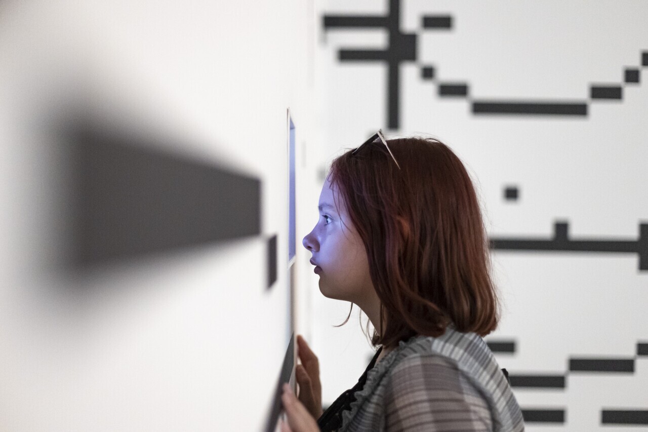 Gdańsk. Zwiedzający na wystawie pt "Sainer.Koloor" autorstwa Przemysława Blejzyka, która prezentowana jest we wnętrzach Pałacu Opatów w Oliwie