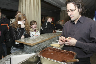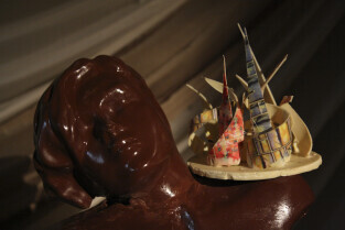 Gdańsk, Kino Neptun. Wystawa rzeźb z czekolady, zrobionych przez gdańskich cukierników