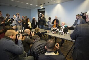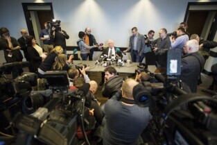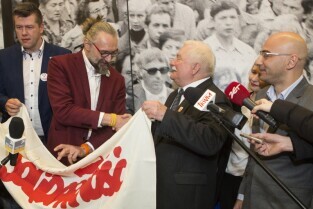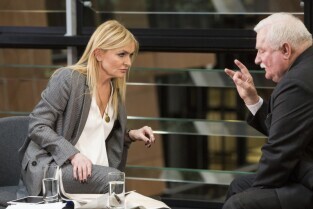 Wywiad dziennikarki TVN24 Moniki Olejnik z byłym Prezydentem RP i przywódcą NSZZ Solidarność Lechem Wałęsą nt. jego rzekomej współpracy ze Służbą Bezpieczeństwa PRL. Gdańsk, Europejskie Centrum Solidarności