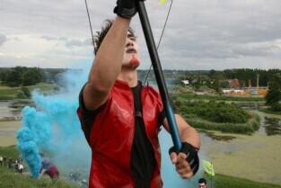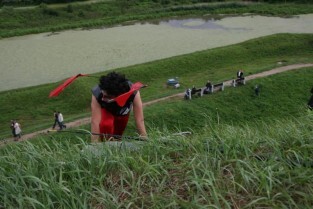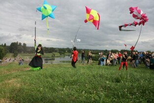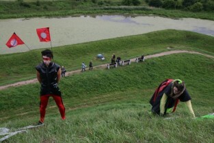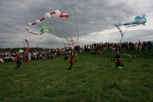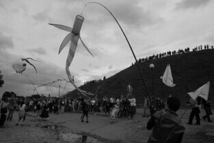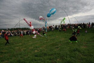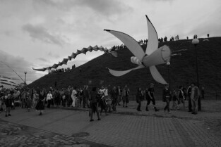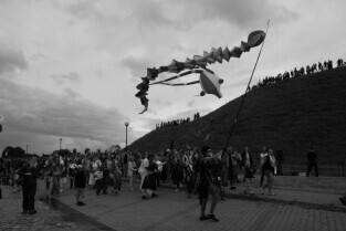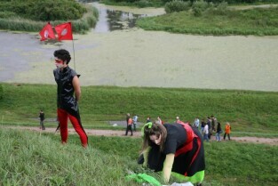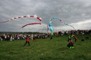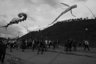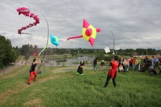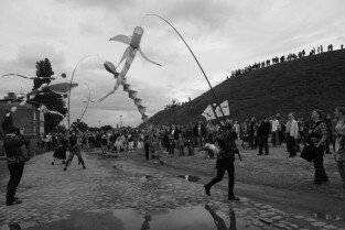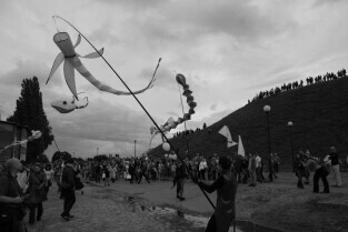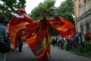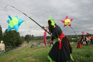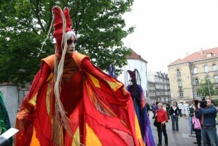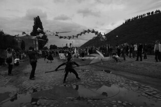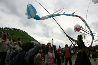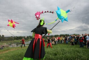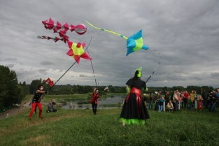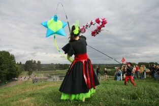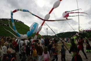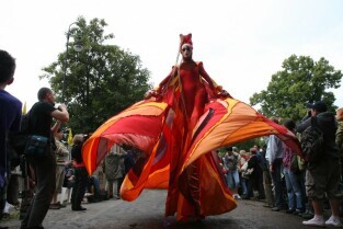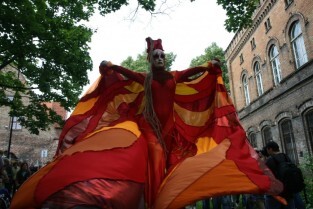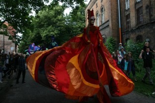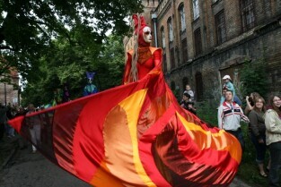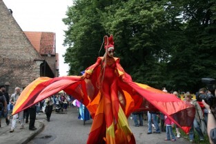 XIII Międzynarodowy Festiwal Teatrów Plenerowych i Ulicznych. Gdańsk, Dolne Miasto Bastion Żubr. Nz. przedstawienie pt. "A-TA-KA" teatru Cal y Canto (Hiszpania)