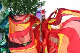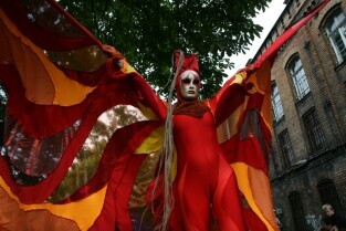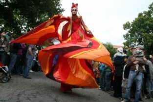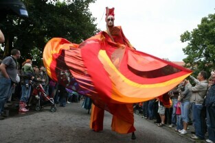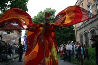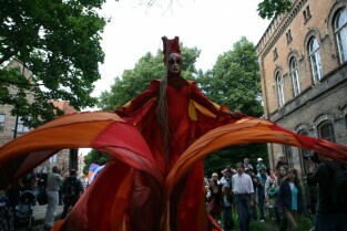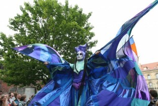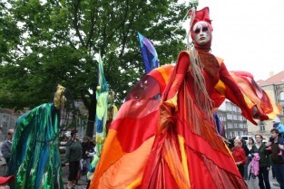 XIII Międzynarodowy Festiwal Teatrów Plenerowych i Ulicznych. Gdańsk, Dolne Miasto pl. Wałowy. Nz. przedstawienie pt. "Colors" teatru Teatro Pavana (Holandia/Włochy)