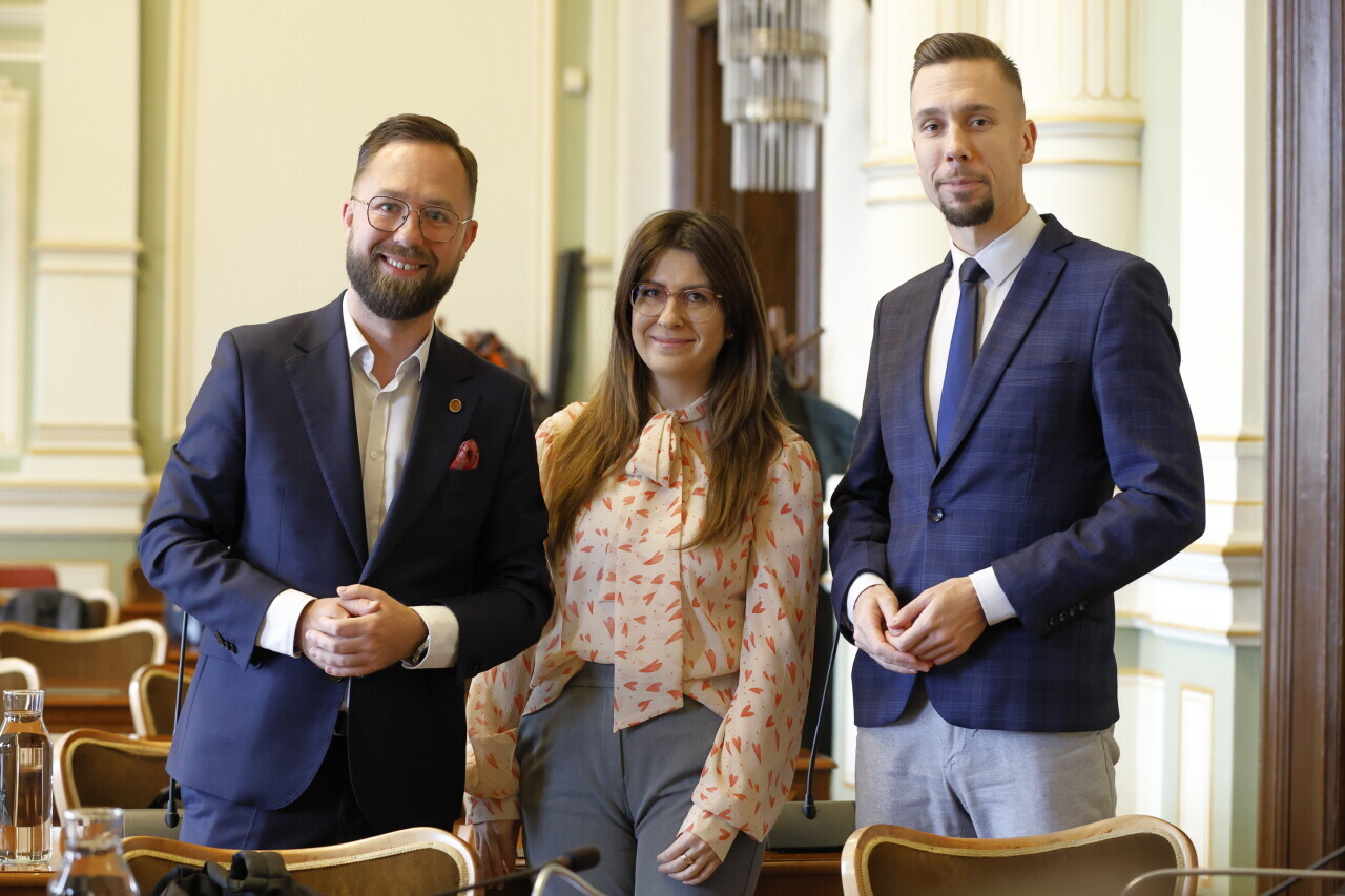 Gdańsk. XIII Sesja Rady Miasta Gdańska. Nz. Radni Krystian Kłos, Beata Jankowiak i ukasz Bejm.