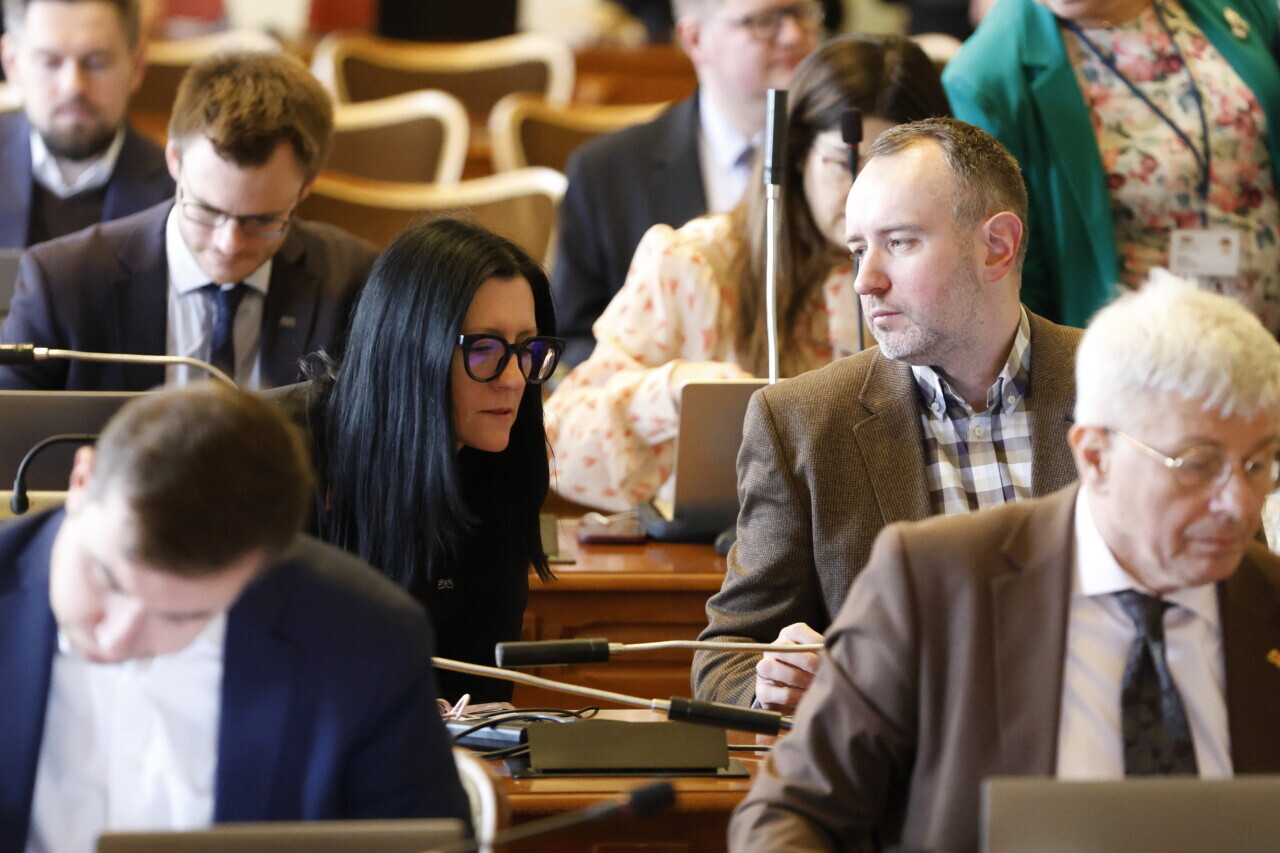 Gdańsk. XIII Sesja Rady Miasta Gdańska. Nz. Radni Sylwia Cisoń i Karol Ważny.
