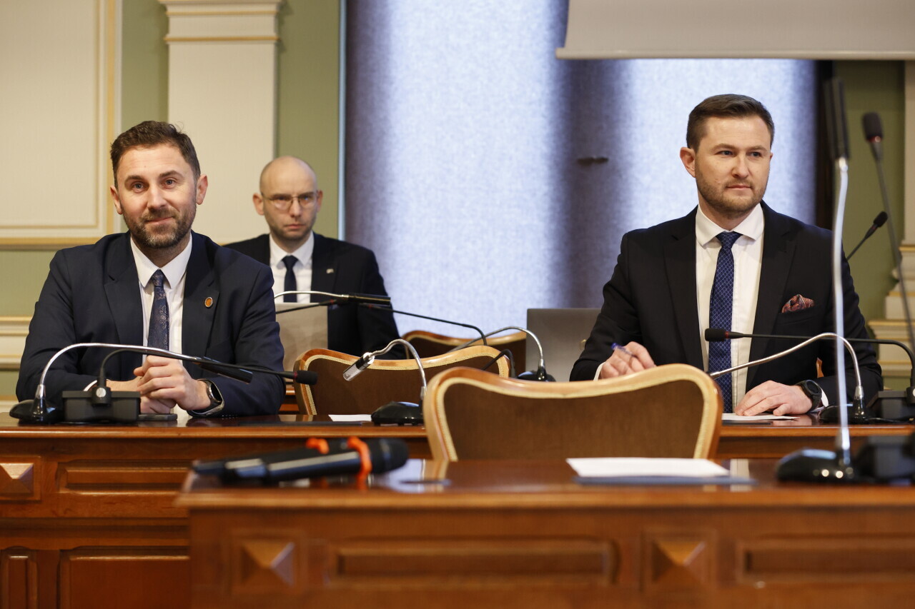 Gdańsk. XIII Sesja Rady Miasta Gdańska. Nz. Wiceprezydenci Gdańska Piotr Borawski i Piotr Grzelak oraz Piotr Kryszewski Dyrektor Zarządzający ds.Zielonego Gdańska.