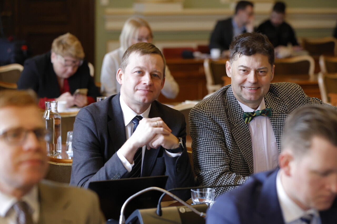 Gdańsk. XIII Sesja Rady Miasta Gdańska. Nz. Radni Łukasz Świacki i Wojciech Błaszkowski.