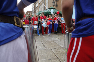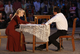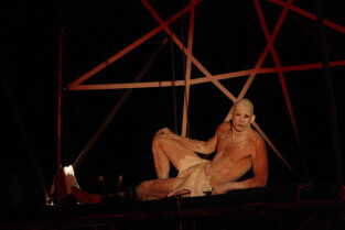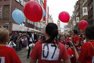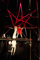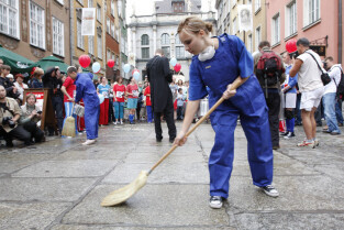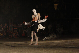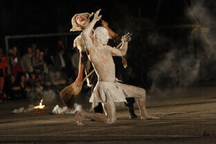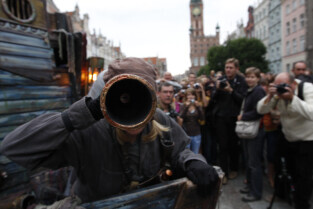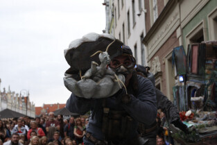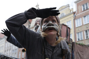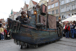 Przedstawienie "Stół" Teatr Snów (Gdańsk) na boisku pomiędzy Długim Targiem, a ul. Ogarną