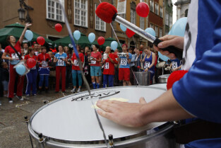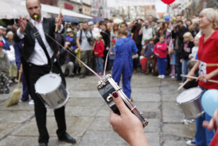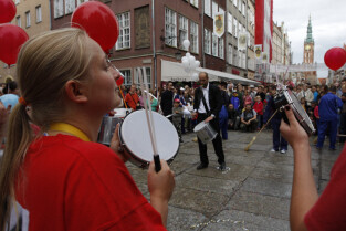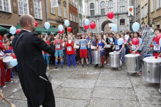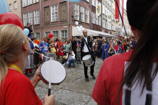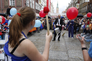 Przedstawienie "Madeinchina" Samba Rhytmus of Resistance Trójmiasto na ul. Długiej w Gdańsku