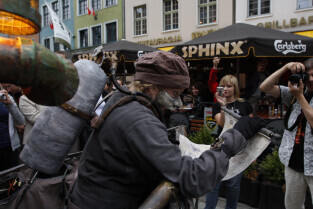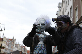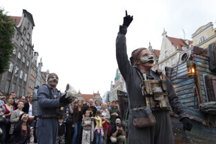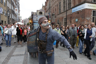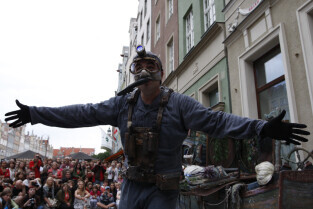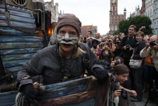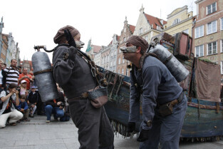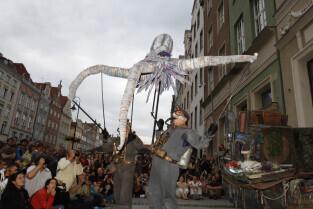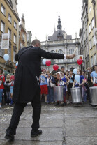 Przedstawienie "Bizzarium" kanadyjskiego teatru Las Sages Fous na Długim Targu w Gdańsku