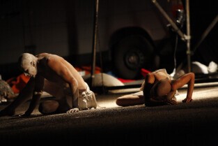 Przedstawienie "Doppelganger" Teatr Novogo Fronta (Czechy), które odbyło się na ul. Grobla IV, na boisku SP nr 50