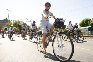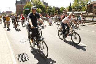 XII Przejazd Rowerowy 2008. Nz. Paweł Adamowicz na rowerze