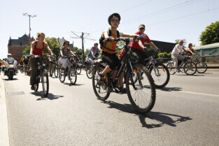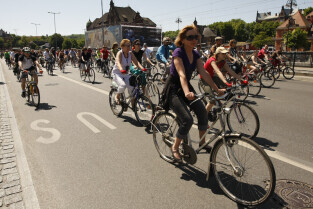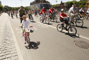 XII Przejazd Rowerowy 2008. Nz. rowerzystka na Podwalu Grodzkim