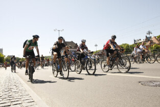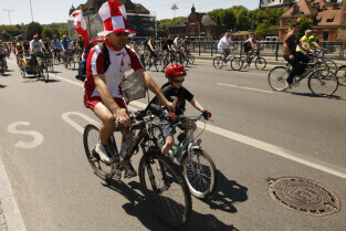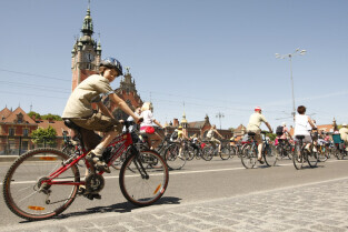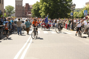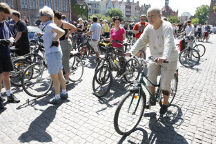 XII Przejazd Rowerowy 2008. Nz. rowerzyści na Podwalu Grodzkim