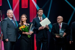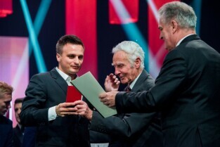 XIV Gdańska Gala Sportu w Operze Bałtyckiej. Nz Rafał Lis i rodzice Natalii Partyki
