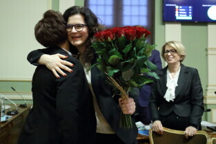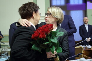 Gdańsk. XIX sesja Rady Miasta Gdańska. Nz. Izabela Kuś, nowa Skarbnik Miasta Gdańska i Teresa Blecharska, była Skarbnik Miasta Gdańska.