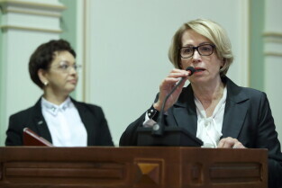 Gdańsk. XIX sesja Rady Miasta Gdańska. Nz. Izabela Kuś, nowa Skarbnik Miasta Gdańska.