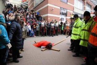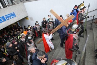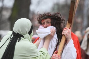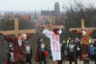 XI Misterium Męki Pańskiej na ulicach Gdańska. Podobnie jak w latach poprzednich, Inscenizacja Drogi Krzyżowej rozpoczęła się w Wielki Piątek o godz. 12.45 przed Dworem Artusa a zakończyła na Górze Gradowej.