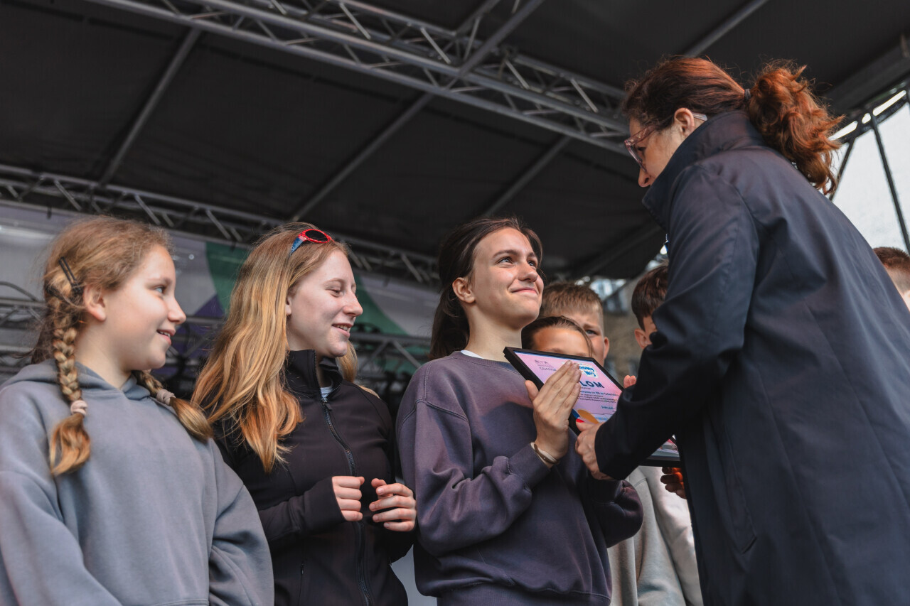 Gdańsk, Targ Węglowy. XI edycja Rowerowego Maja. Piknik oraz wręczenie nagród. Dyplomy wręczali, Aleksandra Dulkiewicz, prezydent Gdańska, wiceprezydent Piotr Borawski i Marcin Bonisławski