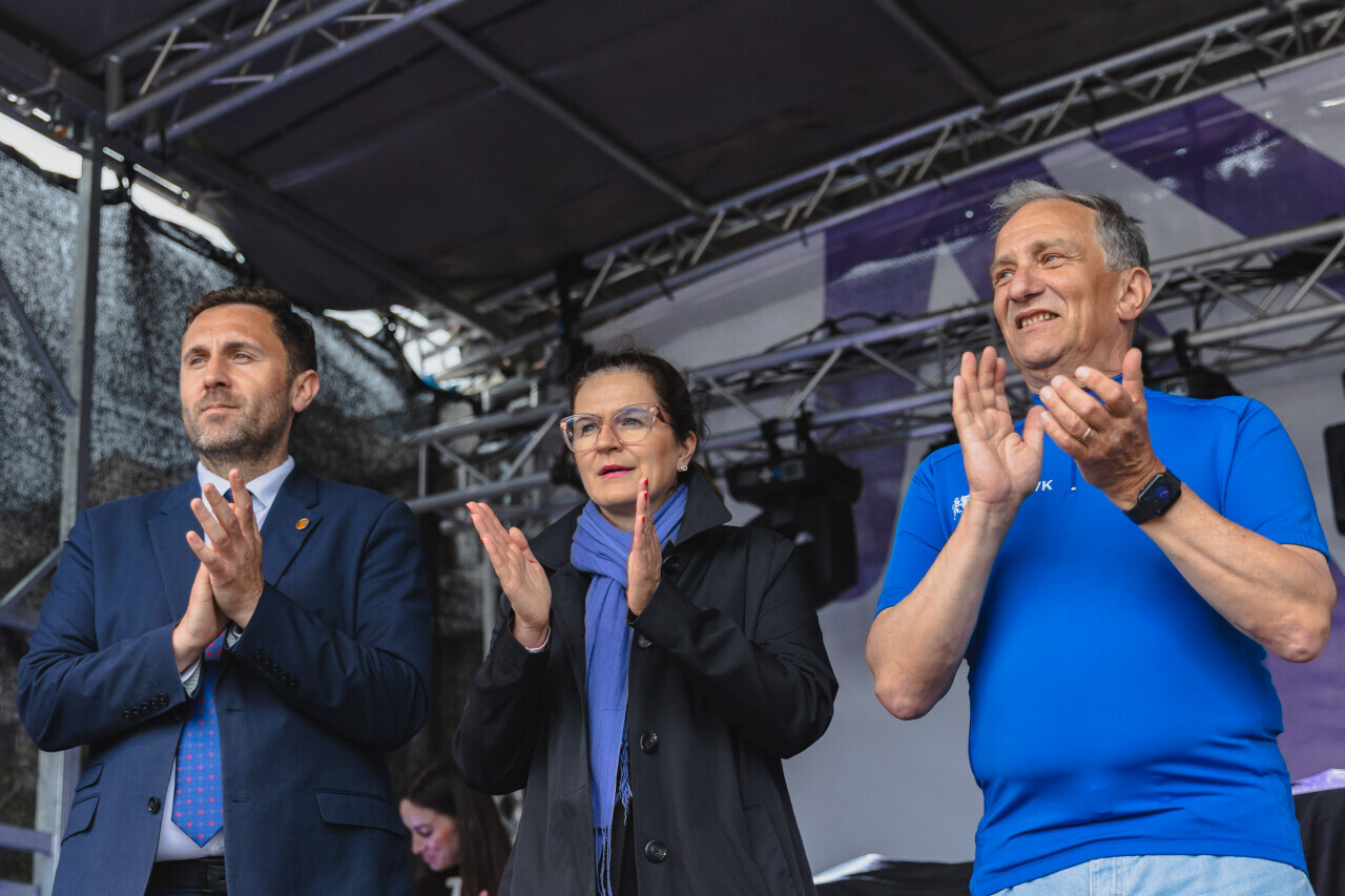 Gdańsk, Targ Węglowy. XI edycja Rowerowego Maja. Piknik oraz wręczenie nagród. Dyplomy wręczali, Aleksandra Dulkiewicz, prezydent Gdańska, wiceprezydent Piotr Borawski i Marcin Bonisławski