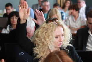 Urząd Miejski w Gdańsku. Sierpniowa sesja Rady Miasta Gdańska. Nz. Radna Jolanta Banach.