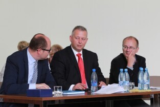 Urząd Miejski w Gdańsku. Sierpniowa sesja Rady Miasta Gdańska. Nz. (od lewej) Prezydent Gdańska Paweł Adamowicz, Zastępca Prezydenta Gdańska Andrzej Bojanowski i Zastępca Prezydenta Gdańska Maciej Lisicki.