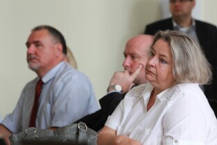Urząd Miejski w Gdańsku. Sierpniowa sesja Rady Miasta Gdańska. Nz. Radni Przemysław Ryś, Halina Leman i Piotr Skiba.