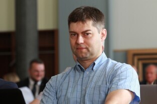 Urząd Miejski w Gdańsku. Sierpniowa sesja Rady Miasta Gdańska. Nz. Radny Marek Bumblis.