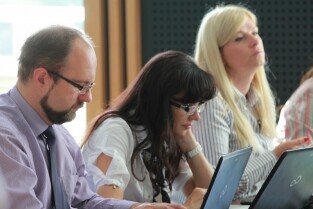 Urząd Miejski w Gdańsku. Sierpniowa sesja Rady Miasta Gdańska. Nz. Radni Paweł Czerniewski, Żaneta Geryk i Beata Wierzba.