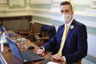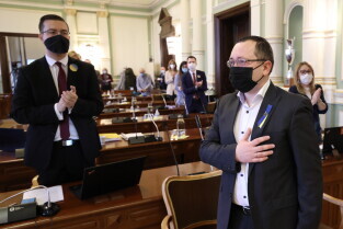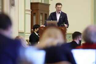 Gdańsk.XLVII sesja Rady Miasta Gdańska. Nz. Oleksandr Plodystyi, Konsul Generalny Ukrainy w Gdańsku.