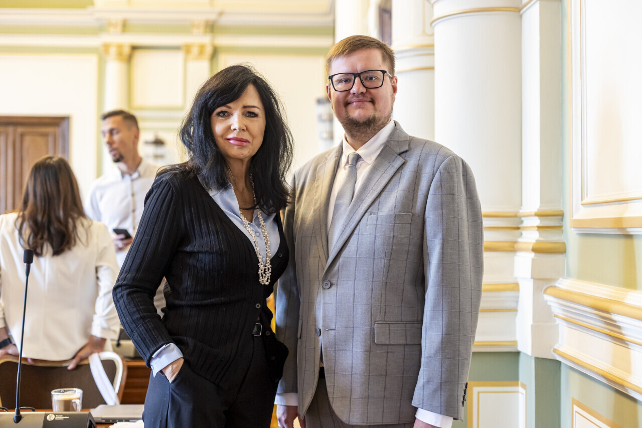 Gdańsk. XVIII Sesja Rady Miasta. Nz. Radni Żaneta Geryk i Marcin Mickun