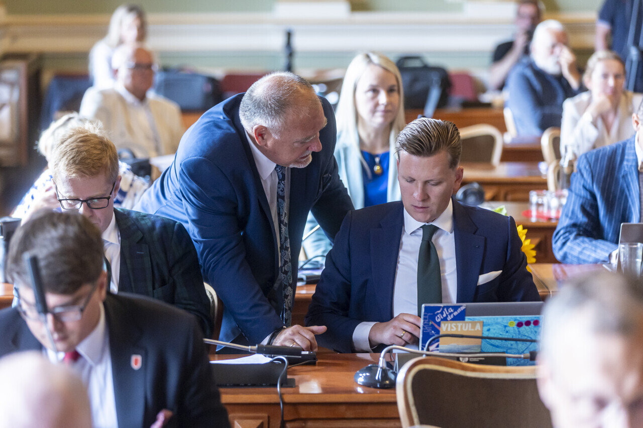 Gdańsk. XVIII Sesja Rady Miasta. Nz. Radni Piotr Gierszewski i Przemysław Majewski