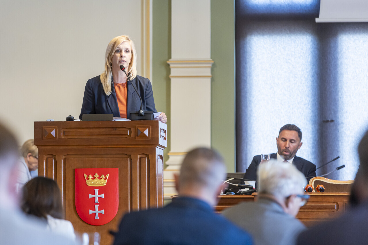 Gdańsk. XVIII Sesja Rady Miasta. Nz. Emilia Lodzińska, Zastępczyni Prezydenta Miasta Gdańska ds. rozwoju przestrzennego i mieszkalnictwa
