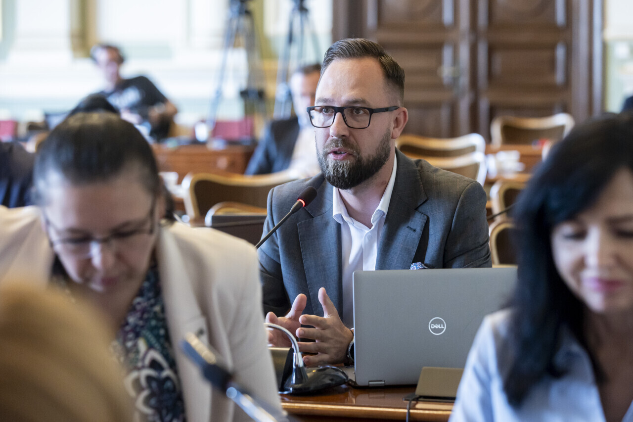 Gdańsk. XVIII Sesja Rady Miasta. Nz. Radny Krystian Kłos