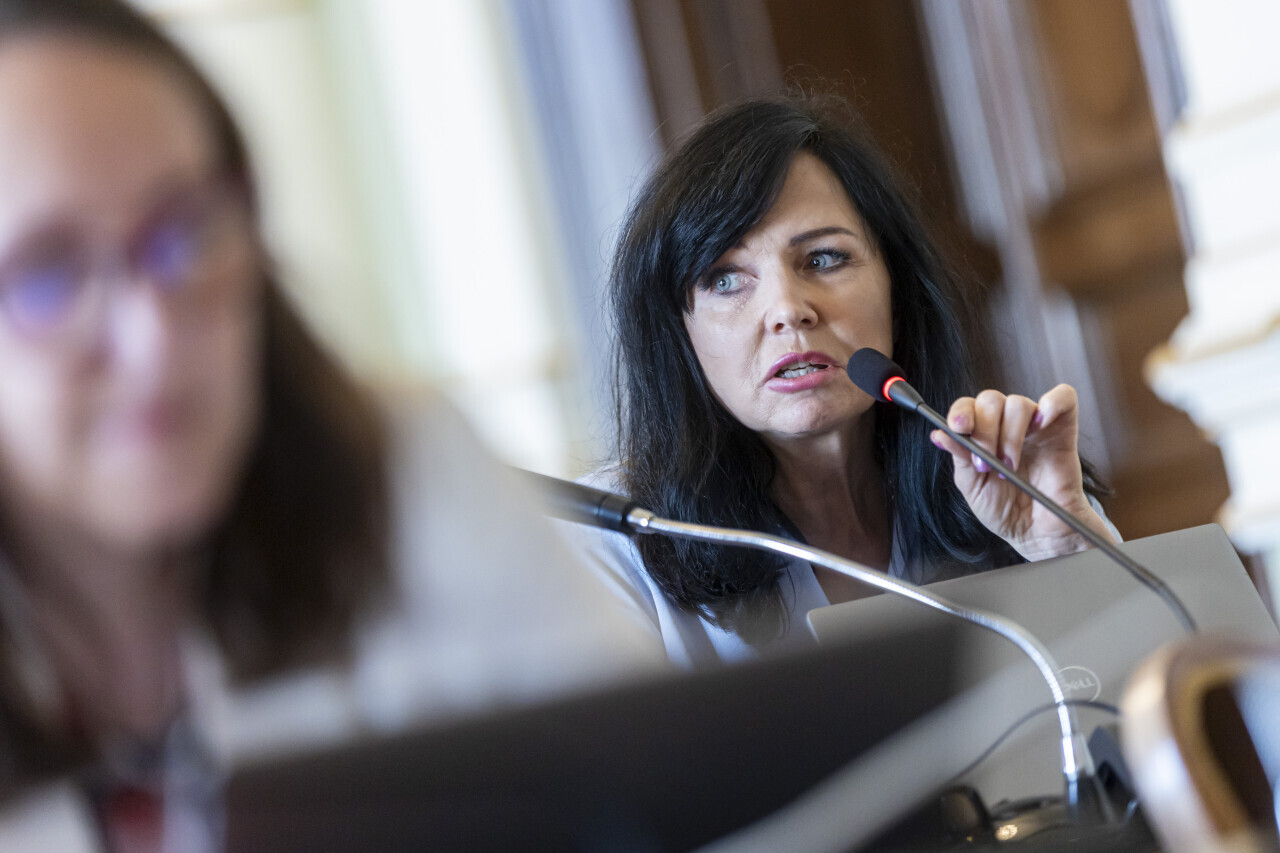 Gdańsk. XVIII Sesja Rady Miasta. Nz. Radna Żaneta Geryk