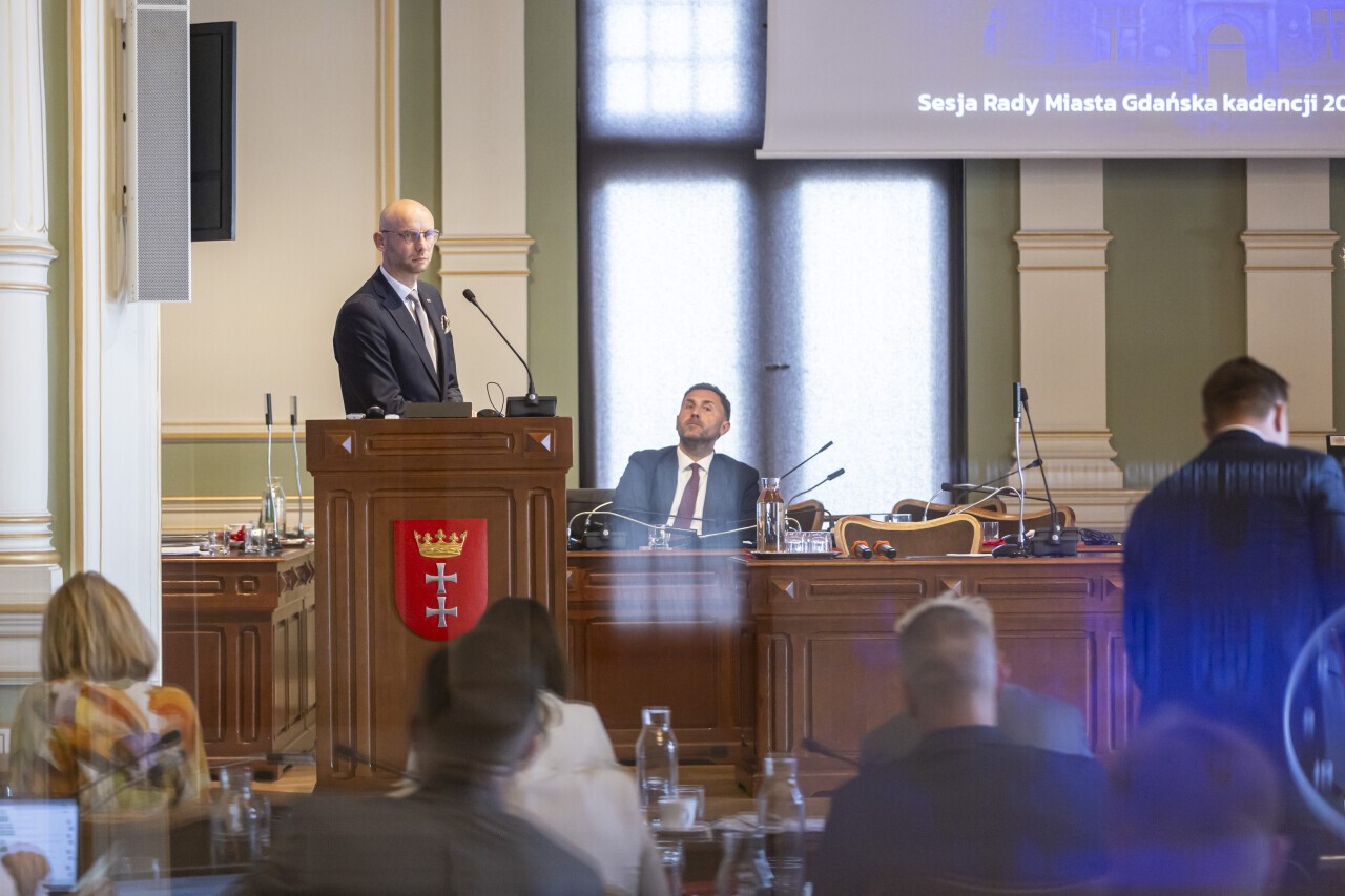 Gdańsk. XVIII Sesja Rady Miasta. Nz. Na mównicy Piotr Kryszewski, Dyrektor Zarządzający ds. Zielonego Gdańska.