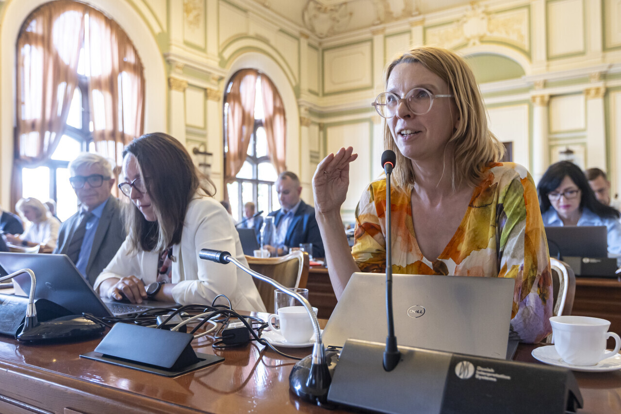 Gdańsk. XVIII Sesja Rady Miasta. Nz. Przemawia radna Anna Golędzinowska