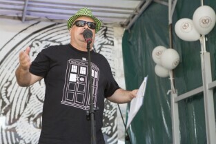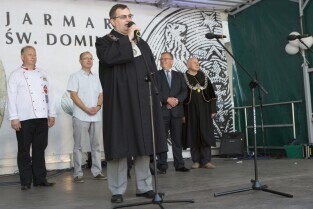 XVI Święto Chleba. Festyn rzemiosła piekarskiego, degustacje. Gdańsk, Długi Targ. Nz. przemawia Z-ca Prezydenta Gdańska Maciej Lisicki