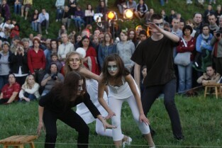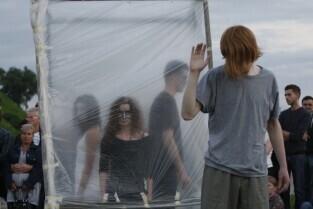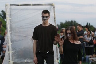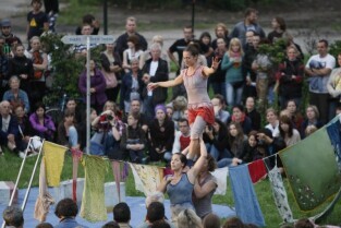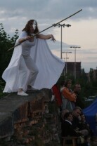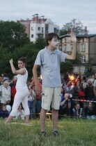 XV Międzynarodowy Festiwal Teatrów Plenerowych i Ulicznych FETA. Gdańsk, Dolne Miasto. Nz. przedstawienie "Głosy, głosy" teatru Ephata (Polska)