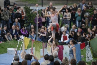 XV Międzynarodowy Festiwal Teatrów Plenerowych i Ulicznych FETA. Gdańsk, Dolne Miasto. Nz. przedstawienie "Until now" teatru Mimbre (Wielka Brytania)