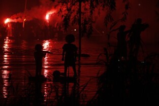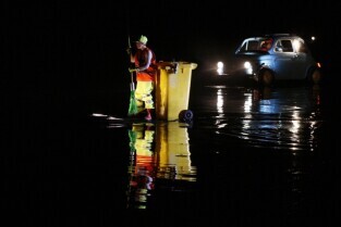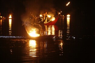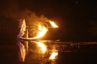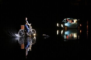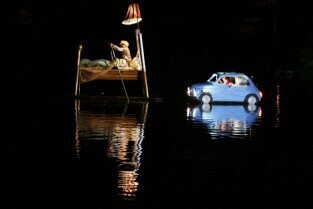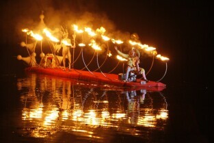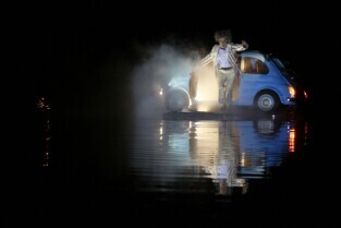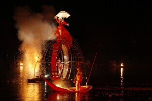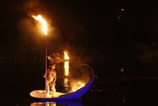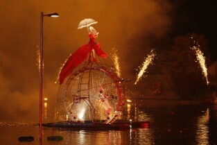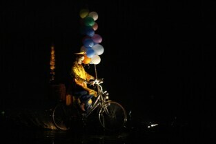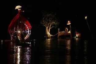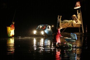 XV Międzynarodowy Festiwal Teatrów Plenerowych i Ulicznych FETA. Gdańsk, Dolne Miasto. Nz. przedstawienie "Water fools" teatru Ilotopie (Francja)