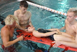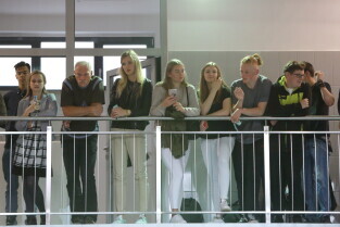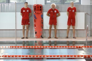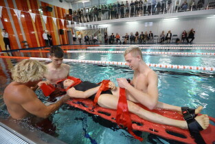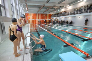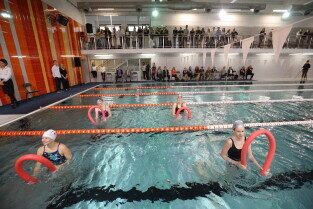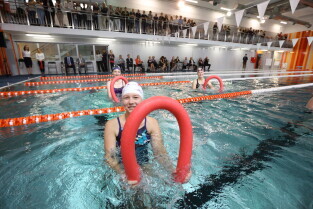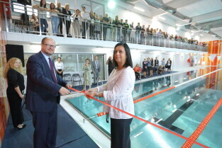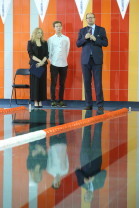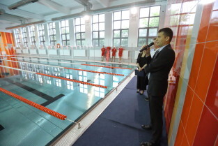 Gdańsk, Liceum Ogólnokształcące nr XV im. Zjednoczonej Europy. Dobiegły końca prace remontowe przy basenie XV Liceum Ogólnokształcącego na Zaspie. Nz Prezydent Gdańska Paweł Adamowicz i uczniowie XV LO.