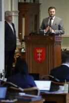 Gdańsk.XV sesja Rady Miasta Gdańska. Nz. Maximilian Kieturakis.