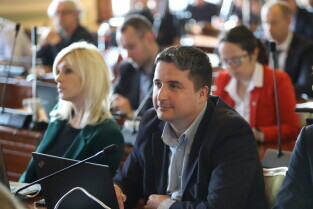 Gdańsk. XV sesja Rady Miasta Gdańska. Nz. Radny Krystian Kłos.