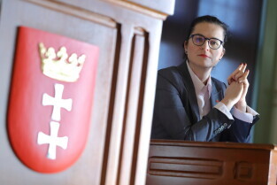 Gdańsk. XV sesja Rady Miasta Gdańska. Nz. Sławina Kosmulska, córka Lecha Bądkowskiego.