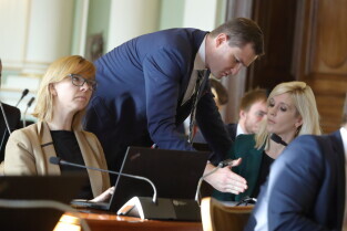 Gdańsk. XV sesja Rady Miasta Gdańska. Nz. Radna Anna Golędzinowska, Wiceprezydent Gdańska Piotr Grzelak i Radna Emilia Lodzińska.